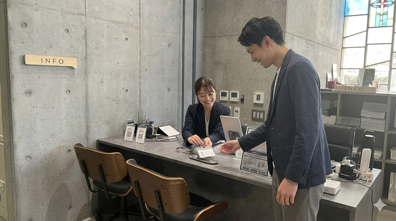 step1:コワーキング受付カウンターへお越しください