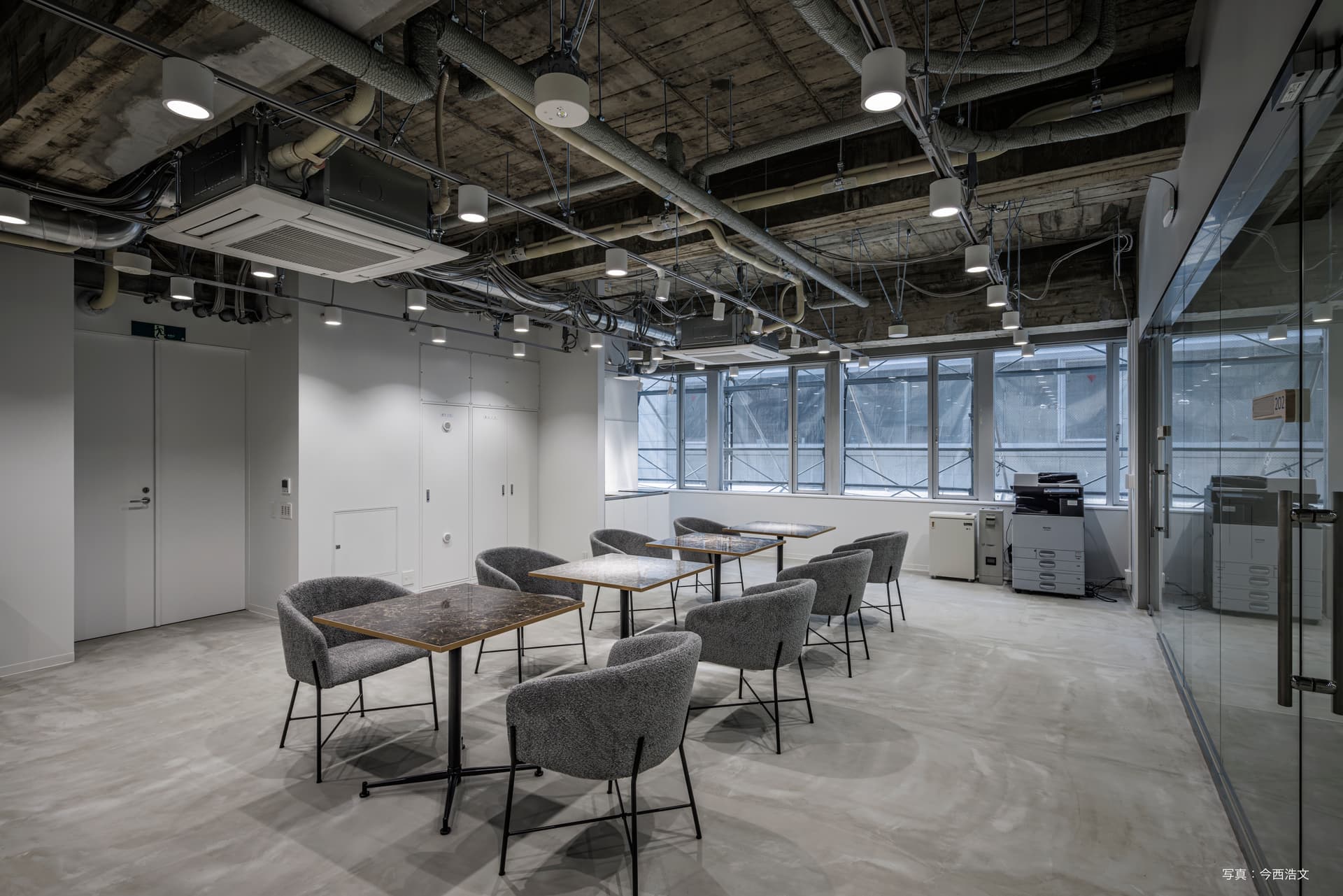 広さの魅力: ゆったりとしたデスク配置はもちろん、部屋の隅に複合機や資料棚を設置するスペースを確保できます。